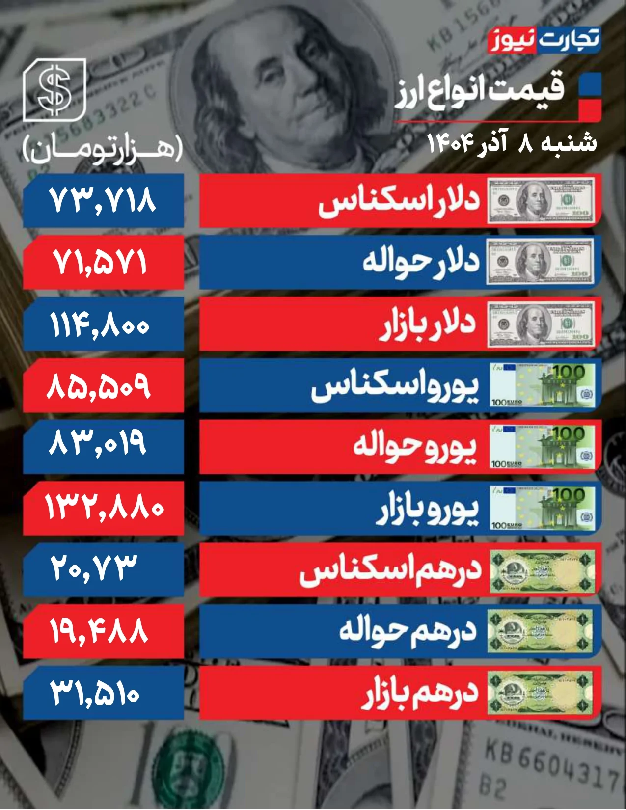 به گزارش سلام نو به نقل از تجارت نیوز،قیمت دلار در معاملات امروز بازار تا لحظه نگارش این گزارش روی رقم ۱۱۴ هزار و ۸۰۰ تومان قرار گرفته است. روند قیمت دلار در روزهای اخیر تحت تاثیر عوامل مختلفی قرار داشته است. با وجود ثبات نسبی در برخی روزهای گذشته، امروز نشانههایی از افزایش قیمت در بازار مشاهده میشود.